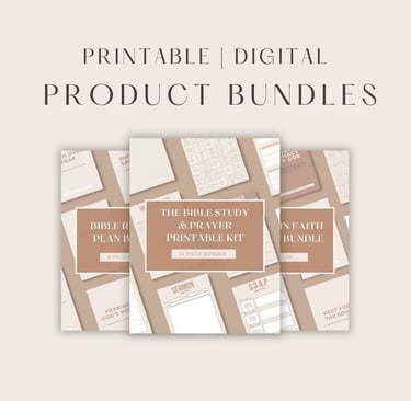 Instantly downloadable and beautifully designed, our printable bundles make it easy to grow in your faith, stay encouraged, and surround yourself with God’s Word—wherever you are. From Bible reading plans to printables, each bundle is created to uplift, inspire, and draw you closer to Jesus.